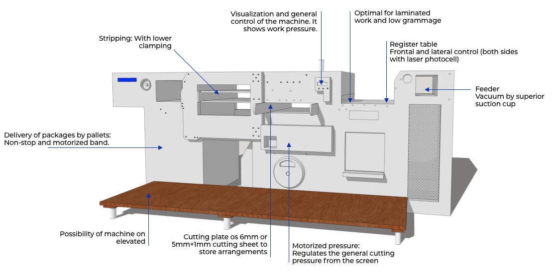 The maximum format of die-cutting goes from 74 x 104 cm to 119 x 169 cm